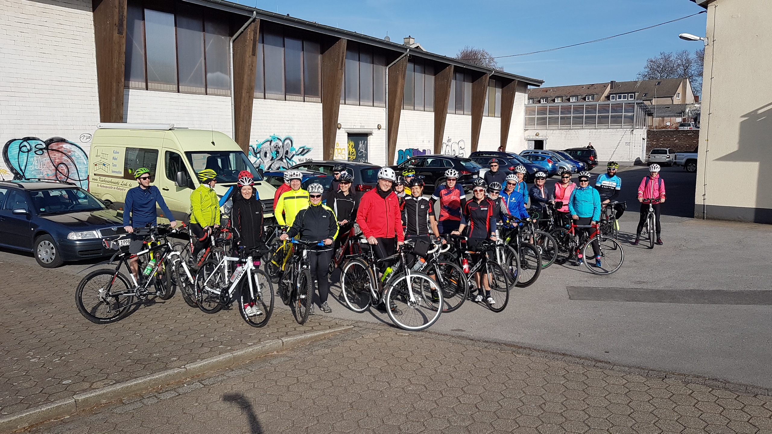 Sonntags geht es an die frische Luft zum Radeln in Gruppen, inzwischen sind die Neulinge auch mit dabei wenn es auf längere Touren geht. (Foto: Erste Frühlings Ausfahrt Sportler TTW Witten, PV Triathlon Witten und Projektteilnehmer)