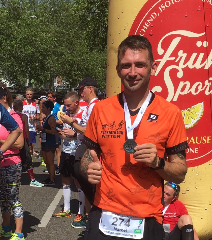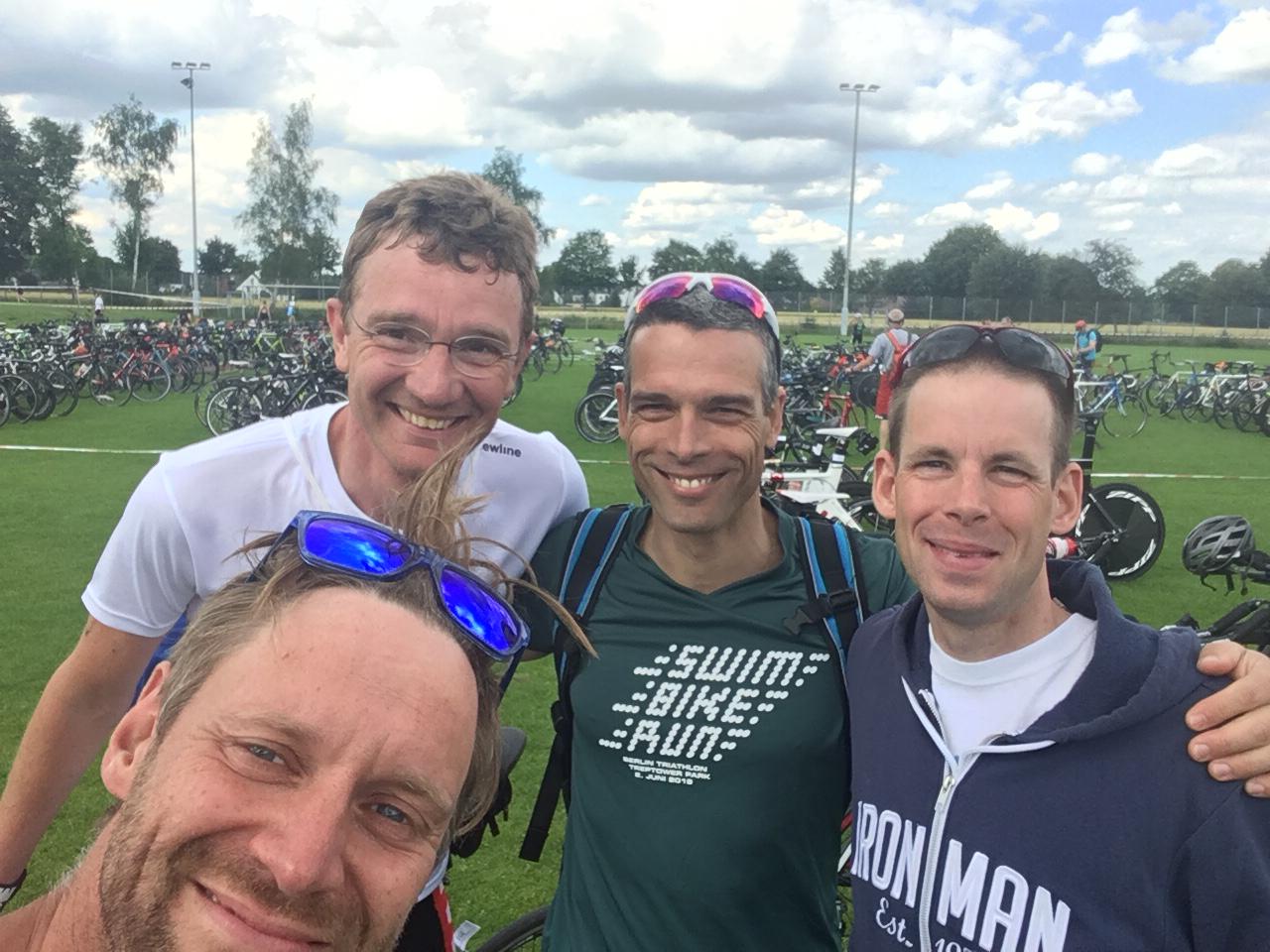 Stefan stellt als Teamerster sein Fahrrad in der Wechselzone ab und ging auf die abschließende 10 KM Laufstrecke. Kurz darauf folgten Matthias und Tillmann.