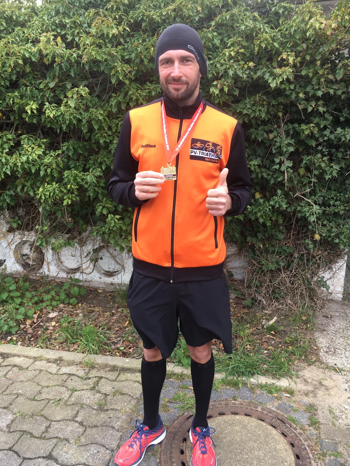 Matti Fahrenson kannte seine Mitstreiter bereits aus dem Vorjahr und nutzte daher bereits den ersten Teilabschnitt von 400 m laufen, um sich leicht von den anderen Startern zu lösen. Nach einem gemeinsamen Radfahren mit einem anderen Athleten über 3,5 km konnte der PVler mit einem schnellen Wechsel und der anschließenden deutlich schnellsten Laufzeit einen der Siegerpokale für den 1. Platz in Empfang nehmen.