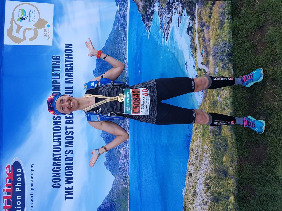 „Ich hatte mir für diesen Lauf kein Zeitlimit gesetzt, ich wollte ihn genießen und so viele Fotos wie möglich machen. Kapstadt und der Tafelberg, das Kap der Guten Hoffnung, der Chapman's Peak Drive und die schönsten Weingüter waren die Traumziele, in die ich mich hineinsaugte“, berichtet die Pvlerin begeistert. Bei so viel Adrenalinausschüttung lief die Hattingerin die 56 km und 850 Höhenmeter wie im Rausch, bis sie schließlich wie alle der 10.000 Teilnehmer aus der ganzen Welt von sehr vielen Zuschauern ins Ziel geklatscht wurde. „Mit 5 Std. und 14 Min. lief ich eine Zeit, die mich doch überraschte, denn so schnell wollte ich gar nicht laufen. So konnte ich eine Bronze-Medaille entgegennehmen, die für Läufer angedacht ist, die unter sechs Stunden laufen.“ Die meisten Teilnehmer bekommen übrigens eine blaue Medaille, wenn sie sieben Stunden und länger brauchen.