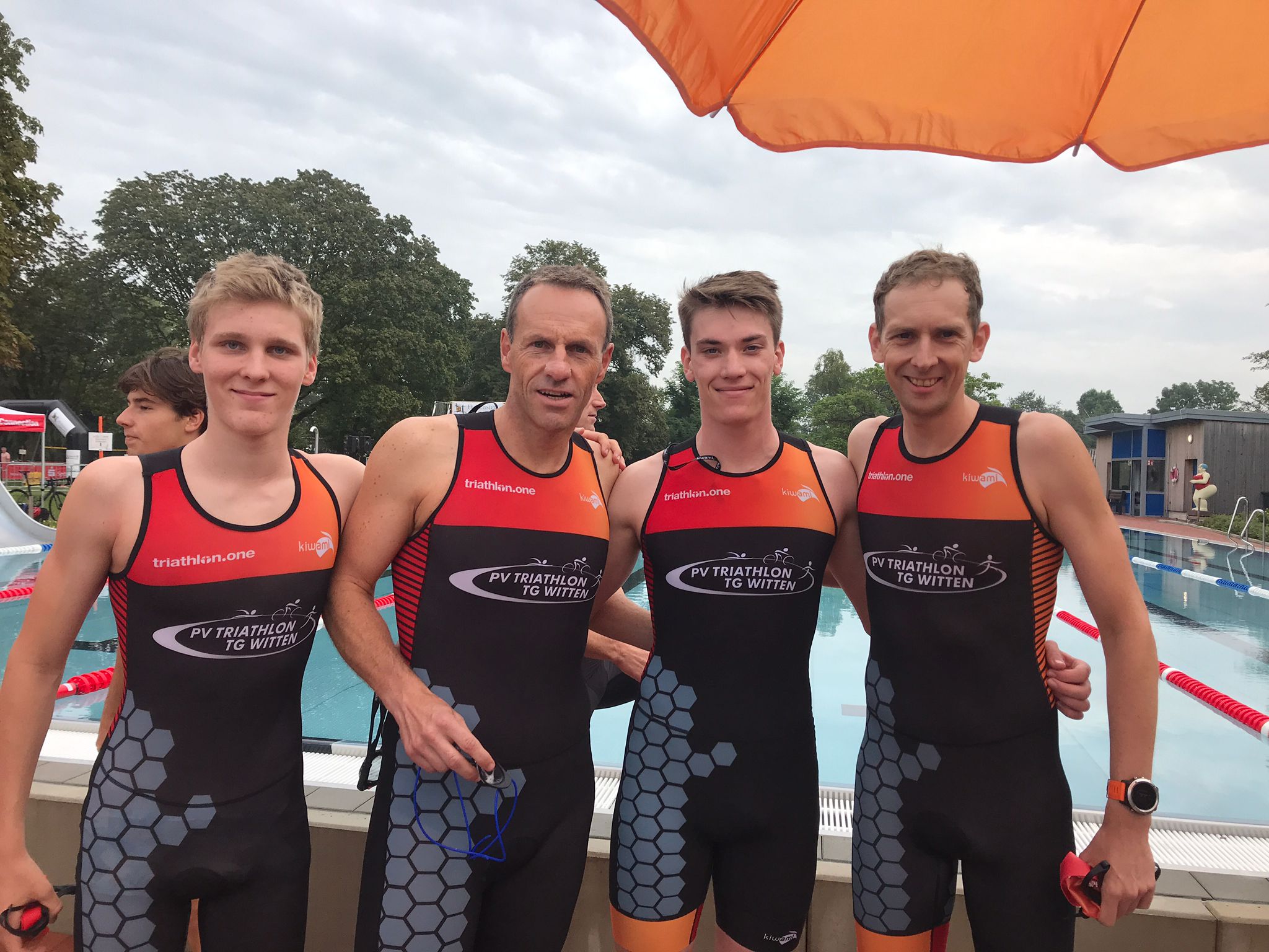 Den Anfang machten in der NRW-Liga am Sonntag Hardy Dinklage, Matti Fahrenson, Matthies Groll und Sebastian Schmitt in Vreden über die Sprintdistanz mit 750m Schwimmen, 18km Rad und 5km Laufen.