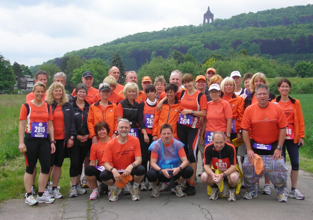 "Auch der etwas weitere Weg hat sich gelohnt!" war die einhellige Meinung der Laufgruppe des PV-Triathlon Witten, die mal wieder auf Reisen gegangen war. Vier Wochen nach der Teilnahme am Halbmarathon in Bonn war am letzten Wochenende der Porta-Westfalica-Halbmarathon das Ziel der rührigen Laufgruppe. "Wir waren überrascht von dem Lauf, viele Teilnehmer am Start, sehr gute Organisation, eine flache Strecke sowohl durch das landschaftlich schöne Wesertal wie auch durch die Stadt Minden und vor allem viele Zuschauer, die mit großer Begeisterung die Läufer anfeuerten", lobt Mentorin Brigitte Meinshausen den Halbmarathon. "Das hat auch dazu beigetragen, dass unsere Anfängergruppe aus dem letzten Jahr erstmalig über 10 km oder über die Halbmarathondistanz gestartet und 'lächelnd ins Ziel' gekommen ist." Damit die Lauf-Eleven ihren ersten Zieleinlauf besonders gut in Erinnerung behalten werden, stellte sich die gesamte Laufgruppe hinter der Ziellinie zu einem Spalier auf u nd begrüßte die Finisher mit einer la-ola-Welle, die so manches Glückstränchen auslöste. Bis dahin war Martin Herrmann als schnellster PVler schon nach 1:39:22 Std. als 4. der M55 über die Ziellinie gelaufen, gefolgt von Stefan Reissland (1:40:14 Std./25. M40), Andreas Täge (1:45:44 Std./26. M45) und Bernd Arling (1:48:44 Std./31. M45). Bei den Frauen hatten Ute Bahl und Yara Behrens die Nase vorn (1:57:12 Std. Plätze 6 und 7 W45). Aber auch Treppchenplätze gingen an die PV-Laufgruppe: Barbara Kleist holte sich den Sieg in der W60 (2:04:31 Std.) und Anne Heibing, sie lief zusammen mit Bettina Nick nach 2:02:54 Std. durch das Ziel, wurde Zweite der W55. Weiter Platzierungen unter den Top10 erzielten Bärbel Herrmann (2:06 Std./8. W50) und Heike Schul (2:07 Std./9. W50). Die weiteren Ergebnisse: Ulrich Knepper (2:06 Std.), Klaus Neumann und Matthias Dix (2:07 Std.), Sonja Bartig (1. Halbmarathon 2:09 Std.), Hans-Jürgen Brocke (2:11 Std.), Gerd Schattanik (2:14 Std.), Ulrike Haupt-Arling (1. HM 2:15). Begleitet von ihren Mentoren Brigitte Meinshausen, Stefan Westhues und Hans-Werner Geburek liefen ihren ersten Halbmarathon Christiane Brede-Schöttes (2:50 Std.), Karin Rimpel und Monika Barbe (2:53 Std.) sowie Gabriele Knepper (2:58 Std.). Erstmals in ihrem Leben liefen über 10 km Anna Kienetz, Birgit Koopmeiners, Ulrike Rimpel, Acdredsr Snhröae und Thomas Voss Hand-in-Hand nach 1:15:11 Std. durchs Ziel.