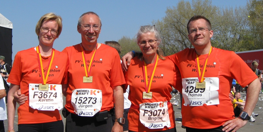 Zum Jubiläumsmarathon in Hamburg haben sich auch Kerstin Bertram-Schultz, Brigitte Voss-Olschewski, Thomas Wilka, Thomas Mankiewicz, der sein Debüt gibt auf der Marathonstrecke gibt und 'Spielertrainer' Jürgen Grühn gemeldet. Der Wetterbericht sagt im Moment schönes Frühlingswetter voraus, so dass nicht nur die 20.000 gemeldeten Läufer, sondern auch das tolle Hamburger Publikum seinen Spaß haben werden. "Dieses Publikum ist, nach den Erfahrungen vom letzten Jahr, mit das beste, dass ein Marathon in Deutschland zu bieten hat, besser sogar als Berlin, und das ist schon sehr gut", lobt Kerstin Bertram-Schultz.