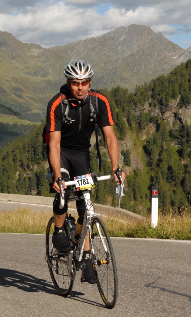 Wenn auch die Temperaturen in Sölden morgens um 6:45 Uhr mit 3°C noch nahe am Gefrierpunkt lagen, tat das der Stimmung bei den Teilnehmern des Ötztal-Rad-Marathons keinen Abbruch. 4300 Radfahrer hatten sich einen 238 km langen Rundkurs vorgenommen, einer von ihnen Thorsten Puderbach vom PV-Triathlon Witten. "Die Strecke führte von Sölden über die Alpenpässe Kühtai, Brenner, Jaufenpass und Timmelsjoch zurück nach Sölden, 5500 Höhenmeter inclusive. Die größte Steigung betrug 19 %, der längste Anstieg von St. Leonhard zum Timmelsjoch zog sich über 31,4 km lang mit einem Höhenunterschied von 1759 m. Die Wettervorhersagen von Regen über Schneefall auf den Pässen bis hinzu überwiegend trocken trafen zum Glück nicht ein - ab dem ersten Anstieg zum Kühtai hatten wir Bilderbuchwetter bis ins Ziel. Nur auf den Abfahrten, auf der Geschwindigkeiten von teilweise über 90 km/h gefahren wurden, mussten wir uns vor der Kälte schützen. Kühe, die sich auf der Strecke rumtrieben, machten das Ganze nicht gerade ungefährlich", berichtet Thorsten Puderbach nach seiner erfolgreichen Rückkehr. "Neben der überwältigenden Aussicht sind mir die tolle Stimmung durch die Zuschauer entlang der Strecke und die gute Organisation sehr gut in Erinnerung geblieben, bei technischen Problemen oder Pannen waren begleitende Servicewagen sofort zur Stelle und halfen den Teilnehmern. Ich hatte mir das Ziel gesetzt, vor dem Besenwagen wieder in Sölden anzukommen." Sein Ziel erreichte Thorsten Puderbach überzeugend -mit einer Zeit von 12 Stunden 5 Minuten erreichte er das Ziel deutlich früher.