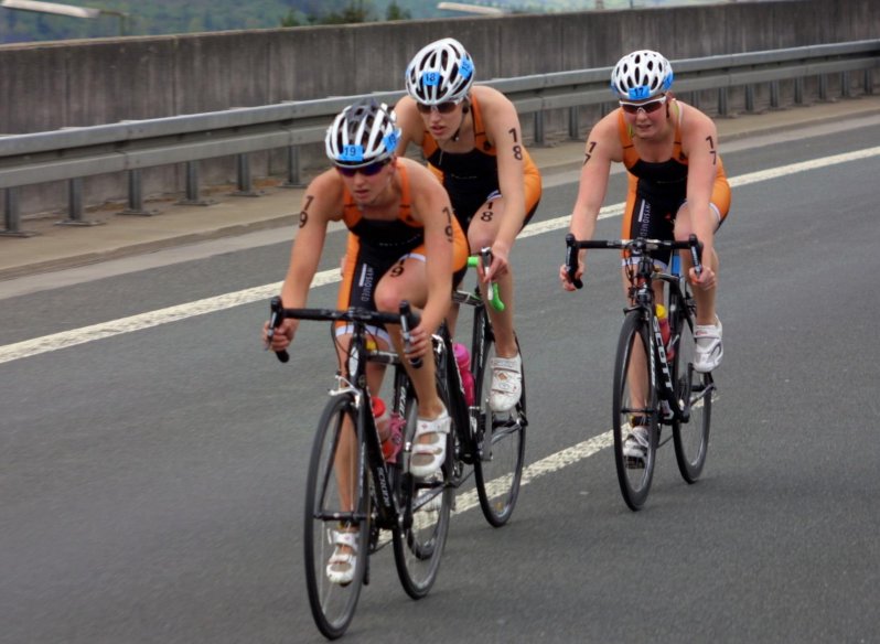 Da dies auch für ihre Teamkolleginnen Kaja Schröder, Marlene Gomez-Islinger und Ann-Cathrin Frick galt, waren die Damen des AVU-Teams nach dem Schwimmen noch gut dabei. Auf dem Rad unterstütze Nordkamp ihre Teamkollegien so gut es ging, musste sie dann allerdings ziehen lassen, sodass diese nur noch zu dritt unterwegs waren. Das verbliebene Trio des AVU-Teams lieferte sich in der Folge einen Schlagabtausch mit den Teams aus Sigmaringen und Altenfurt: „Nach dem Radfahren ging es beim Laufen zunächst eigentlich ganz gut los, aber am Ende hat uns ein bisschen die Kraft gefehlt um mit den beiden vor uns liegenden Teams mitzuhalten“, beschreibt die Debütantin Kaja Schröder den Ausgang des Rennens. An dessen Ende lief das AVU-Team auf dem zehnten Platz in der Zeit von 1:07:41 über die Ziellinie.