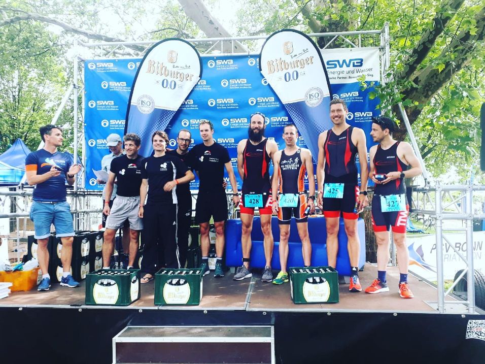 Große Freude bei der Siegerehrung: die SG Triathlon Witten holte "Bronze" mit Platz 3 unter 18 Mannschaften hinter dem Team Indeland Eschweiler II und dem TRC Essen 84 II.