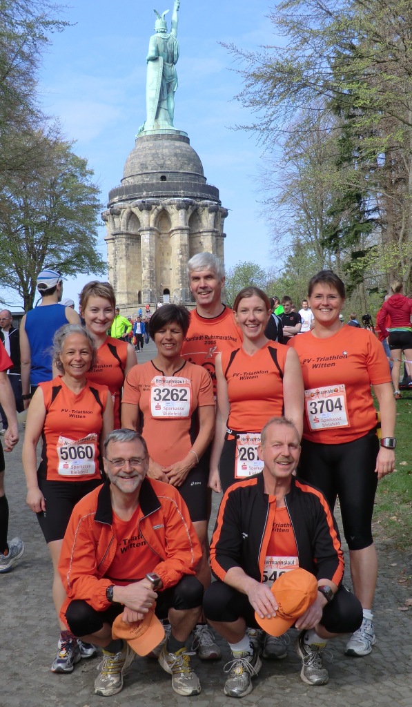 "Letztendlich war der Hermannslauf eine große läuferische Herausforderung, aber auch gut zu schaffen", freut sich Sabine Steinau vom PV-Triathlon Witten nach 31,1 km quer durch den Teutoburger Wald. Die 150 cm große PVlerin war wie ihre sieben Vereinskameraden zum ersten Mal beim Hermannslauf gestartet, "weil man den Hermannslauf mal gelaufen haben sollte."