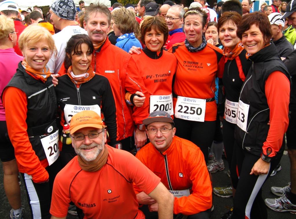 Der Laufverein "Adler-Langlauf" war erneut Veranstalter des alljährlichen 'Herbstwaldlaufes', zu dem sich auch eine große Gruppe des PV-Triathlon Witten angemeldet hatte. Gleichzeitig war der Lauf auch Austragungort der Deutschen Meisterschaft über 50 km. Unter den PVlern auch Birgit Schönherr-Hölscher, die sich am Vorabend noch gar nicht sicher, ob ihre Erkältung überhaupt einen Start zulassen würde. "Wäre schade gewesen, ich mußte wegen der Erklältung schon auf einen Start beim Remscheider Röntgenlauf verzichten", so die frischgebackene Deutsche Meisterin des Jahres 2010.