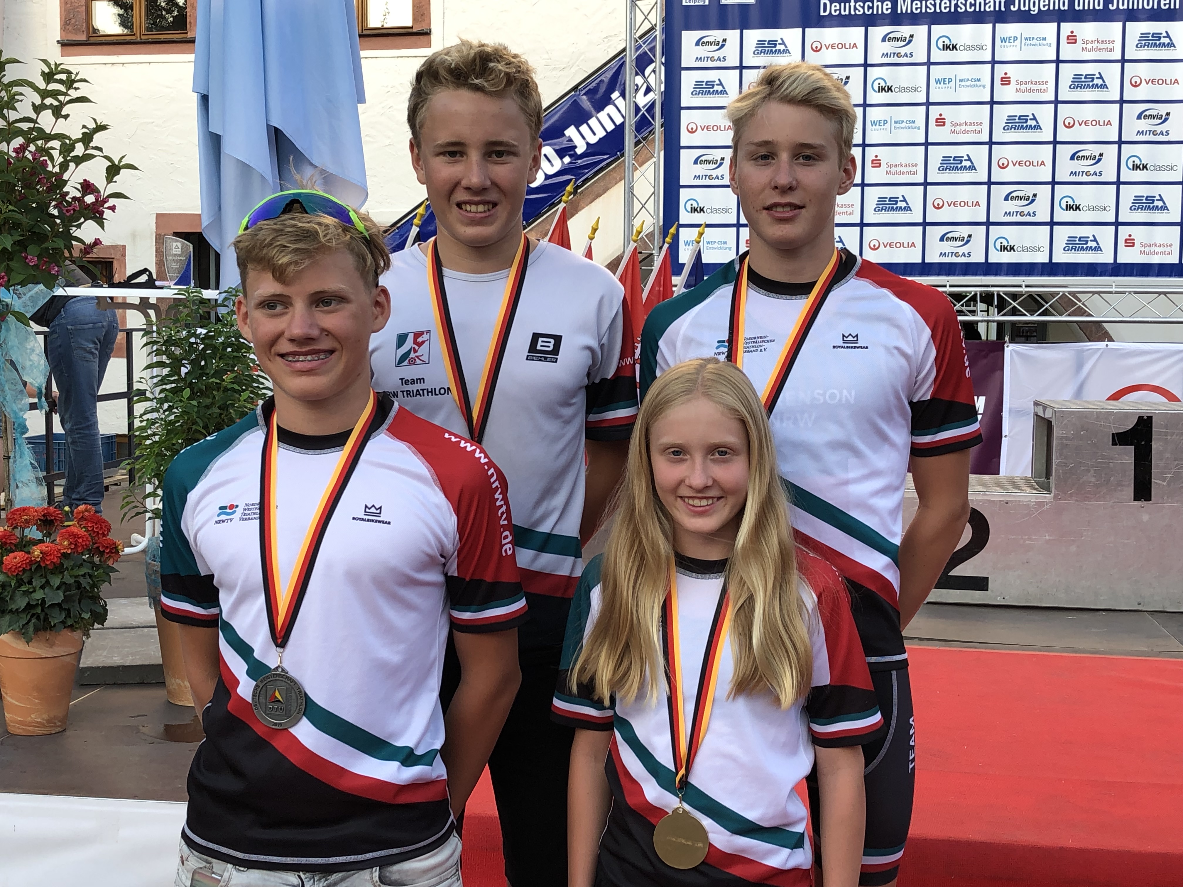 Der 9. Vredener Sparkassentriathlon am 07.09.2019 war gleichzeitig auch Austragungsort für die Landesmeisterschaften der Schüler, Jugend und Junioren. Bei angenehmen Temperaturen und überwiegend trockener Strecken zeigten die Athletinnen und Athleten des PV-Triathlon insgesamt hervorragende Leistungen. Die sehenswerte Bilanz: zwei Landesmeistertitel durch Luca Fahrenson und Lukas Meckel und drei Vizelandesmeistertitel für Emma Fahrenson, Matti Fahrenson und Max Meckel gingen in die Ruhrstadt.